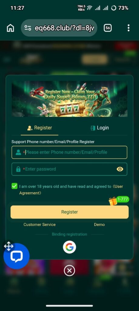 To start using the EQ668 game, you need to register first. Open the app and click on the sign-up option. Enter your mobile number or email and create a password. After that, verify your account with a code.